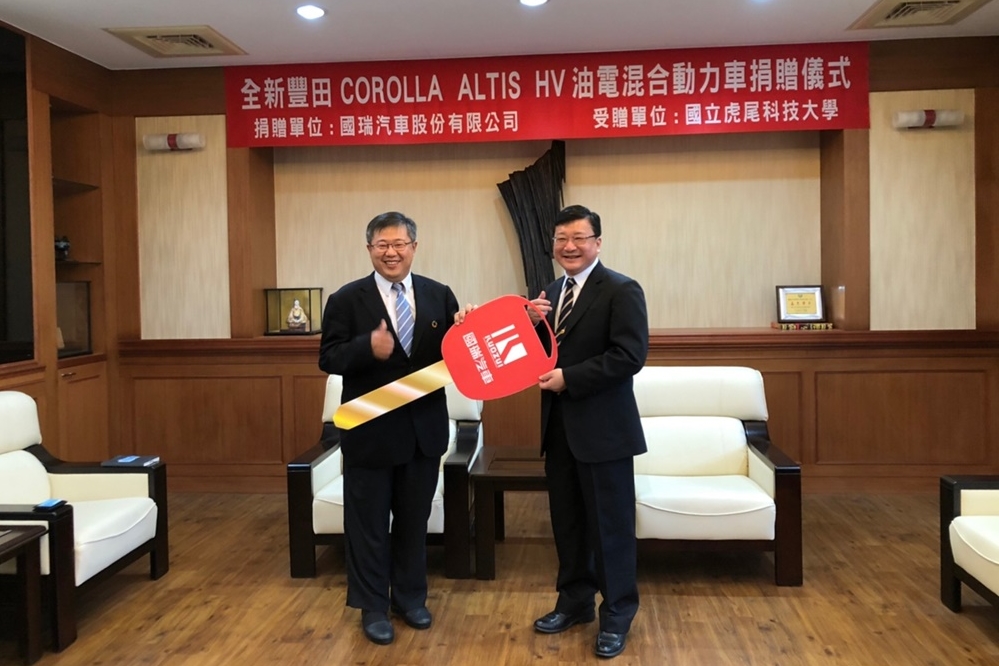 國立虎尾科技大學於12/5(一)接受國瑞汽車股份有限公司(簡稱國瑞汽車)捐贈價值新台幣88萬元「Corolla Altis HV油電混合動力車」,提升技專院校學生車輛工程實作場域,助攻台灣汽車產業新興科技人才培育。