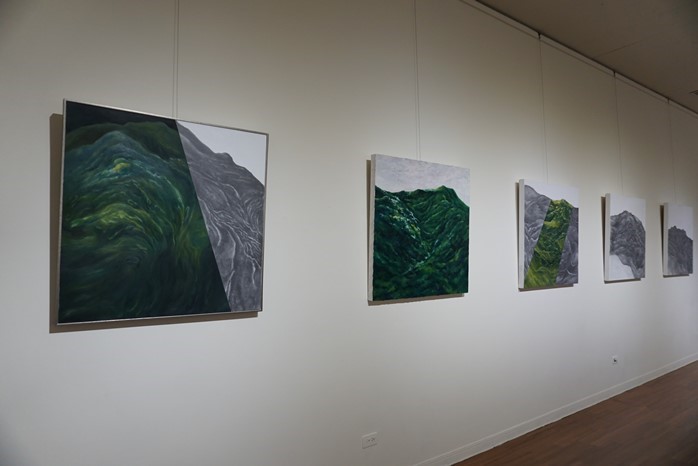 「山嶼」系列則在堆疊的顏彩中,展現透光的可能性。展覽即日起至3/29日(五)止於虎科大第二校區綜三館一樓展覽室展出,假日休館,歡迎各界蒞臨參觀。