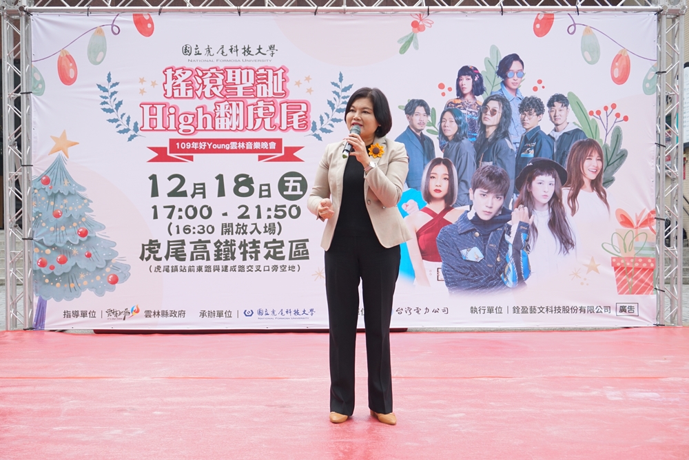 為提升虎尾科大與周邊社區、縣內居民之連結及促進旅外青年回流,本校承接雲林縣政府指導辦理「109年好Young雲林音樂晚會」,將於12月18日在虎尾高鐵特定區盛大登場。今日特別舉行宣傳記者會,由本校炎藝火舞社帶來精彩演出。本次晚會由台灣電力公司贊助,邀請多位重量級藝人,有混血男神畢書盡、美聲天后梁文音、魏如昀、陳忻玥及麋先生、原子邦妮等樂團輪番開唱。現場還有精美禮品及近百項好禮摸彩,讓縣民提前感受聖誕佳節歡樂氛圍。