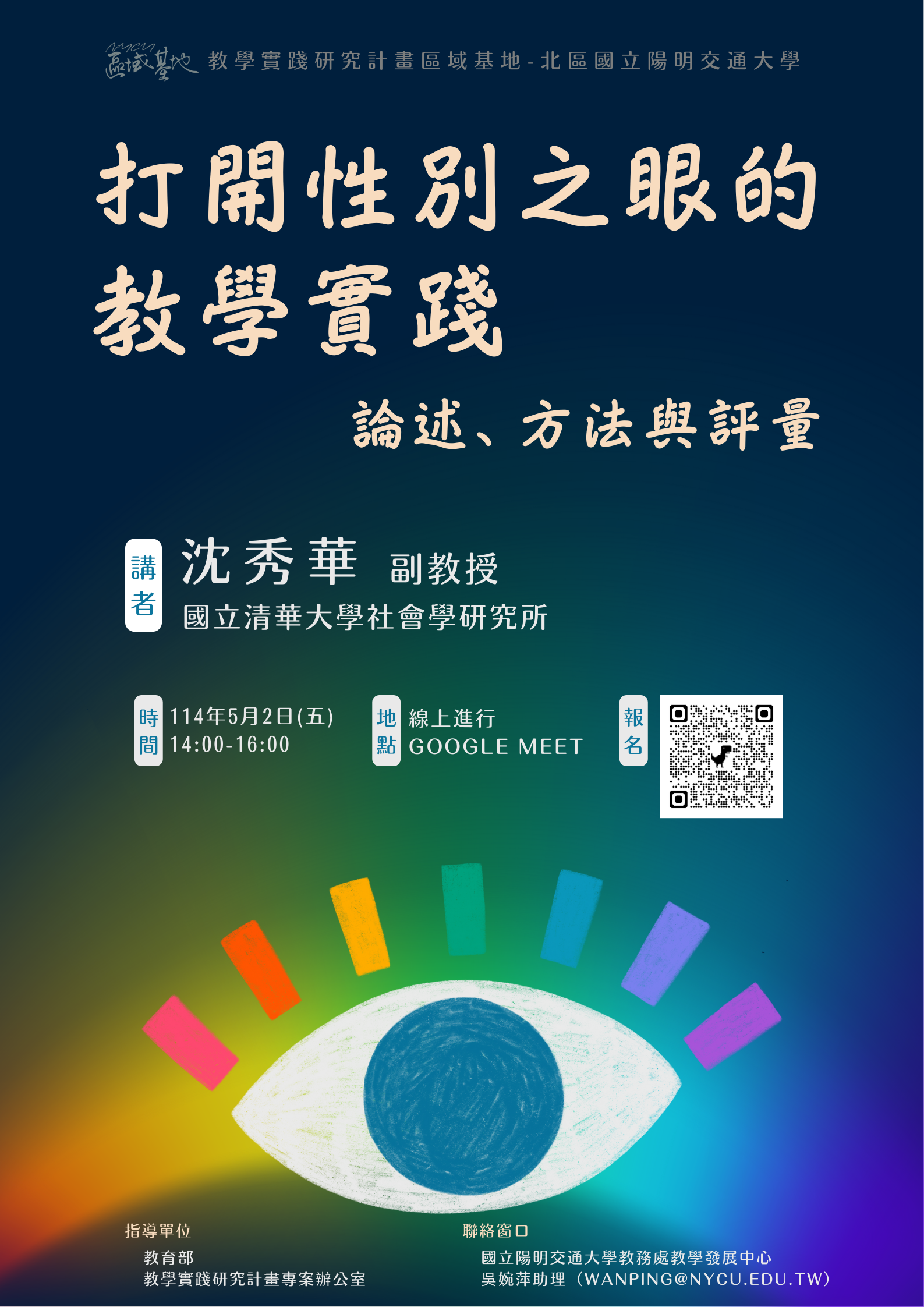 國立陽明交通大學辦理114年度教學實踐研究區域基地計畫「打開性別之眼的教學實踐:論述、方法與評量」活動資訊