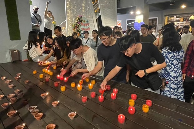 現場印度學生帶來融合傳統與現代的舞蹈表演,優雅與活力兼具的藝術魅力讓人驚艷不已。活動同時安排了趣味互動遊戲「猜國名.搶椅子」,促進台灣學子與國際學生之間的交流。最後,與會者手持仙女棒,一同點亮夜晚的光輝,為彼此送上祝福。