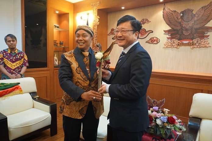 國立虎尾科技大學邀請印尼親王孫德裘(K.R.A.TEJO BAGUS SUNARYO),同時也是梭羅王室宮廷藝術文化總監蒞校交流,12/30(一)舉行「克里斯劍祈福儀式暨台印文化交流」,孫德裘以親手打造並致贈虎科大的「克里斯劍」掛上紅白玫瑰交予校長張信良,祝福虎科大校運昌隆,並感謝台印共同培育青年學子。