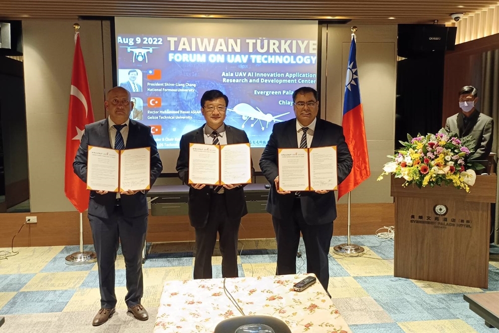 虎科大自2020年與土耳其Gebze Technical University締結姐妹校,疫情期間仍以遠距保持合作交流,延續兩校的互信合作,今年更進一步針對無人載具科技,研擬台土合作人才共同培育計畫。Gebze Technical University校長Prof. Muhammed Hasan ASLAN,以及Fly BVLOS Technology創始人Mr. Kamil DEMIRKAPU為此特地來台為「台灣土耳其無人載具中心」揭牌,並參加由虎科大舉辦的「台灣土耳其無人機科技圓桌會議」(2022 Taiwan Türkiye Forum on UAV Technology),研討無人機開發技術與國際合作議題,針對「NFU智能X卓越中心-無人機和機器人技術」、「非常規飛行器的設計方法」及「使用開源引導無人機開發」探討無人機技術、產業發展與鏈結無人機國際合作新路徑。雙方並於當日簽署「台土無人機計畫合作同意書」,以無人機領域為合作主軸,規劃學術研究與人才培育計劃,包括舉辦國際工作坊及辦理學生短期實習,以提升國際化人才與技術能量。