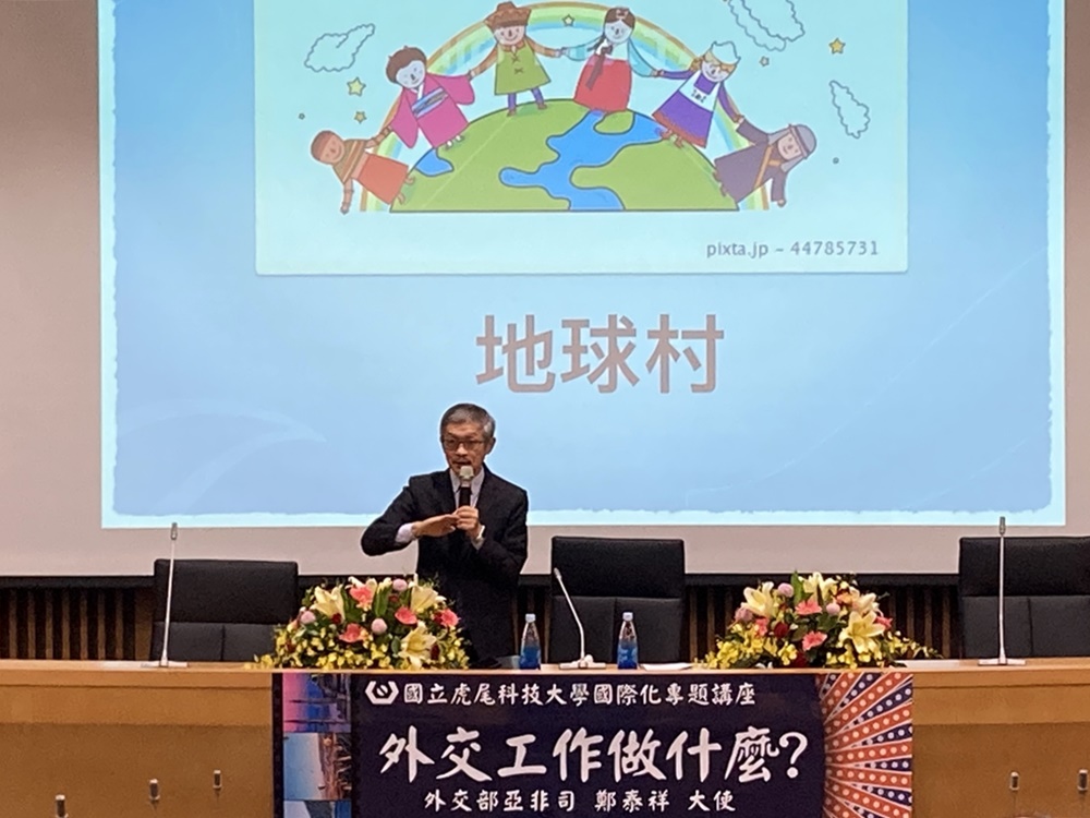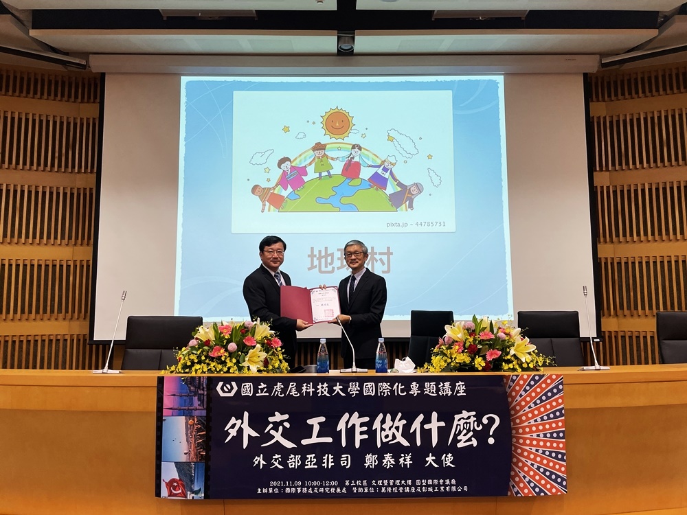本校於110年11月9日在國際會議廳舉辦「外交工作做什麼?」的國際化專題講座,並邀請外交部亞非司鄭泰祥大使蒞校擔任主講人;以台灣和土耳其的雙邊關係做為講座主軸,分享鄭大使豐富的外交經驗,增進該校學生對外交事務的了解、擴大國際視野及外交相關知能的認識,亦希冀能提升學生在疫情結束後前往土耳其姊妹校參與研習計畫之意願。演講結束後,張信良校長亦邀請鄭大使參與學校國際事務處舉辦的「清真飲食文化交流響宴」,由虎尾科大的印尼籍穆斯林國際生準備穆斯林餐點,和鄭大使交流不同國家之間的伊斯蘭特色文化。