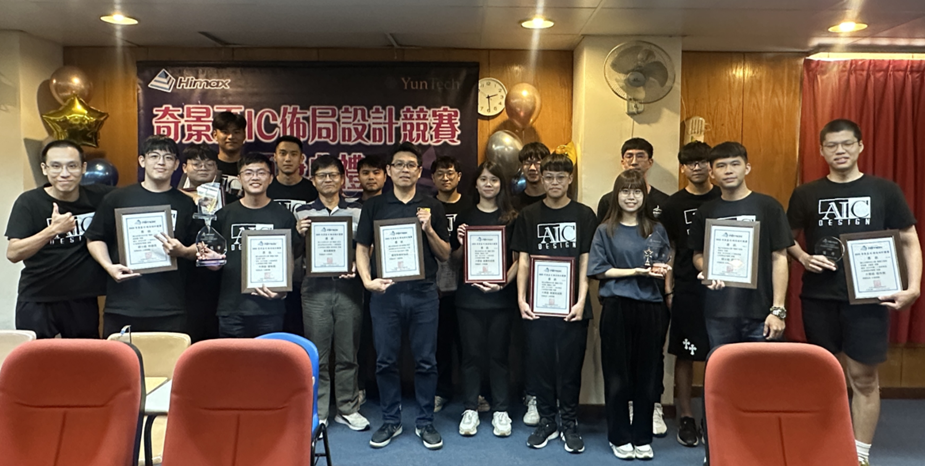 全球半導體產業競爭激烈,IC佈局設計能力已成為人才培育的重要指標。奇景光電股份有限公司主辦「2025第20屆奇景盃IC佈局設計競賽」,並於5/17(六)舉行決賽。國立虎尾科技大學電機工程系由教授呂啟彰、副教授陳厚銘及汪楷茗帶領學生團隊參賽,囊括「特優」、「優等」、「佳作」及「競賽完成證明」等獎項,更以全國最佳整體成績,勇奪最高榮譽「最佳團隊獎」與「最佳指導教授獎」。