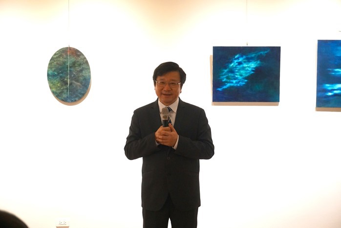 虎科大校長張信良以此次展覽主題「山」勉勵學子,登山過程就像人生,碰到困難險阻,有人挑戰自我邁往更高境界,有人拐彎後便豁然開朗,猶如藝術家透過素描與油畫展現山的不同面向與路徑,抵達心中的風景。