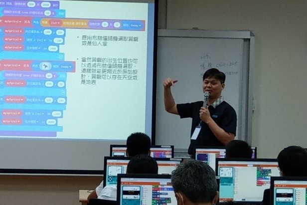 本次活動中將艱澀的程式語言邏輯概念,藉由Scratch的積木式程式語言,讓學童以拖拉推疊積木方式進行程式編譯,且授課過程以遊戲設計原理進行授課,有別於傳統資訊教學模式,不但增進同學全程課程的專注力,也透過完成遊戲小專題促使同學之間熱絡的討論,達成同學相互認識以及培養程式設計基礎構想與能力。