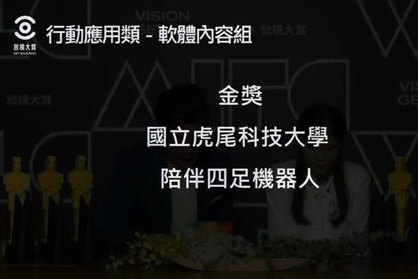 獲頒行動應用類軟體內容組金獎作品「陪伴四足機器人」由崔勤遠、蔡昀庭、陳泓穎與陳廷偉等同學組成團隊研發而成。台灣目前可服務之導盲犬仍舊不足,且導盲犬由訓練到能夠實際服務需要一段時間,再加上由於壽命的限制,每隻導盲犬能服務的時間有限。為了解決此情形,團隊開發出四足機器人,除了解決上述問題外,還能如真的導盲犬一般透過四肢與視障者互動,可望解決導盲犬不足的問題。