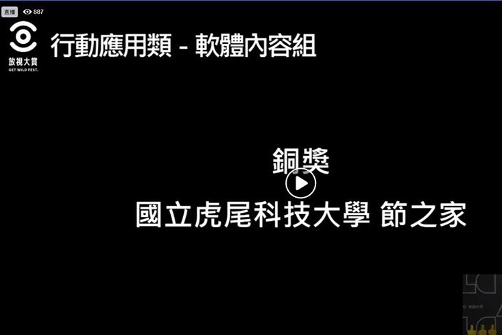 由經濟部工業局、教育部主辦之國內最具指標數位、設計學生創意競賽2020「放視大賞」競賽,於2020/05/15 進行直播頒獎典禮。放視大賞競賽涵蓋行動應用、AR/VR、遊戲、跨領域等多元領域,本校資訊工程系陳國益副教授帶領學生團隊,從兩千多組報名隊伍中脫穎而出,最終榮獲行動應用類軟體內容組金獎與銅獎,跨領域類銅獎及宇峻奧汀廠商特別獎等四項大獎殊榮。