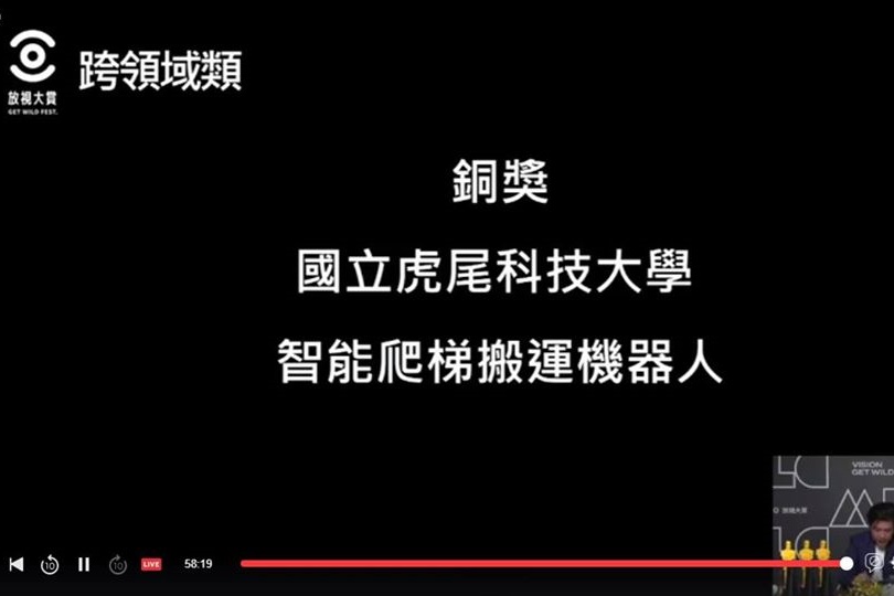 作品「智能爬梯搬運機器人」榮獲跨領域類銅獎,是由盧德霙、邦家瑜、莊崴任及蘇鈺崴等同學組成團隊開發而成。現代老年人口逐漸增加,許多老人獨自在家而沒有家人的陪伴,又因體力衰退及生活機能退化的原因,無法輕鬆搬動重物上下樓層,於是團隊開發本作品,透過機器人的輔助,讓獨自在家的老人搬動重物上下樓梯不再是困難。