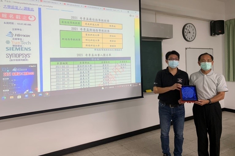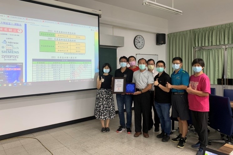 本校電機系學生參加「2021大學校院積體電路設計競賽」與「2021奇景盃IC佈局設計競賽」獲得佳績。奇景光電蔡志忠副董事長、蘇立瑩人資長與陳平波執行副總經理特於8月27日至本校電機系頒發獎狀與獎牌。