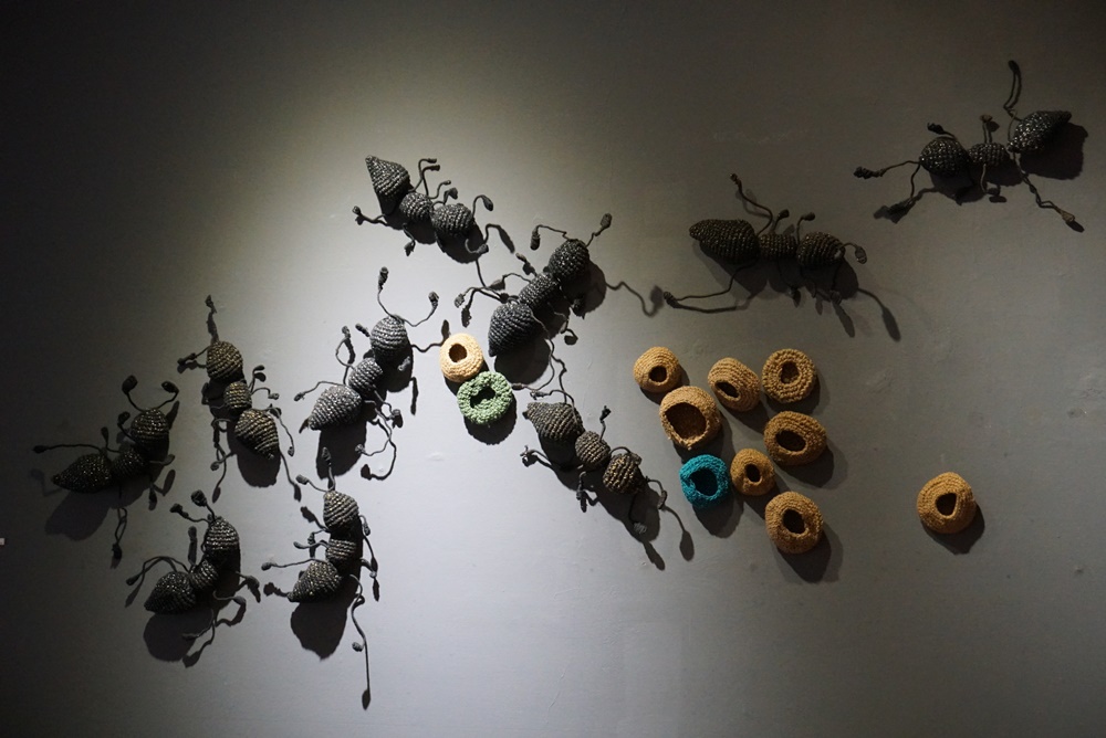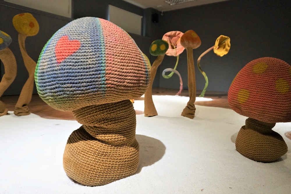 本次展出「童話世界」以組件式裝置藝術呈現,在造型可愛的蘑菇及花卉植物間,將展場變化為奇幻且繽紛的童話世界,觀者穿梭其中宛如置身叢林;「螞蟻」則猶如以放大鏡檢視昆蟲,展現出藝術家獨特的興趣及觀察力;郭昭吟最新手繪畫作,則可看見其身為母親與女兒的互動,亦可以看見生活與創作的強烈連結。展覽即日起至4/27(四)於虎科大第二校區綜三館一樓展覽室展出,假日休館,歡迎各界蒞臨參觀。