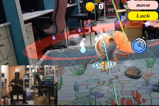 本校得獎作品「MR釣魚」由資工系副教授陳國益指導學生陳冠呈、張覲顯、吳書儁、賴心慈、劉姝辰、劉宸佑所研發,透過魚竿型控制器模擬真實魚竿,提供控制魚竿、甩竿、收竿等操作,以現實生活場景作為遊戲舞台,並將真實物件與虛擬世界結合進行互動,展現最真實的虛擬遊戲體驗。