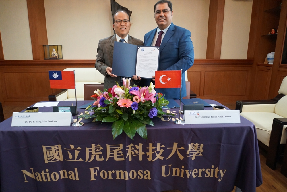 本校於109年3月10日與土耳其蓋布澤科技大學(Gebze Technical University)假該校行政大樓簽署國際合作交流備忘錄,由本校楊達立副校長及蓋布澤科技大學Dr. Muhammed Hasan Aslan校長代表簽約。在虎尾科大邀請下,土耳其蓋布澤科技大學校長Dr. Muhammed Hasan Aslan(物理系教授)與校長秘書Dr. Mehmet Salim Oncel一行於109年3月10日拜會本校並參訪校園特色系所及研究中心,達成了兩校第一次的互訪。透過實質的訪問、校園參觀及學術合作洽談,兩校對於推廣土耳其Mevlana Program、臺灣Taiwan Education Experience Program、歐盟Erasmus Project及資訊工程系雙聯學位合作達成一定的共識,並完成了兩校國際合作交流備忘錄簽署儀式。