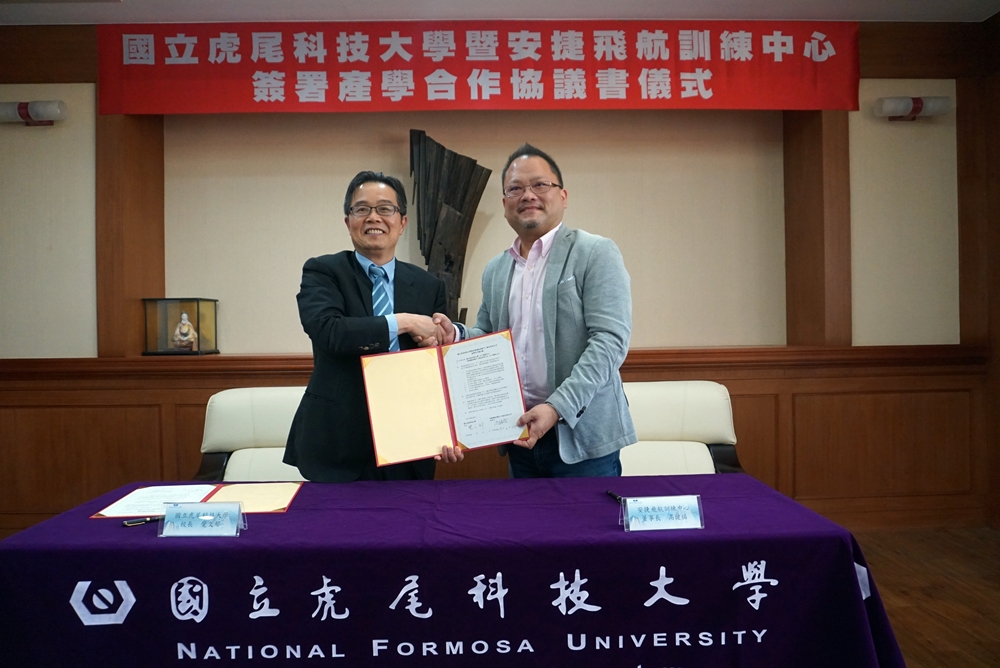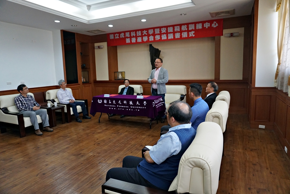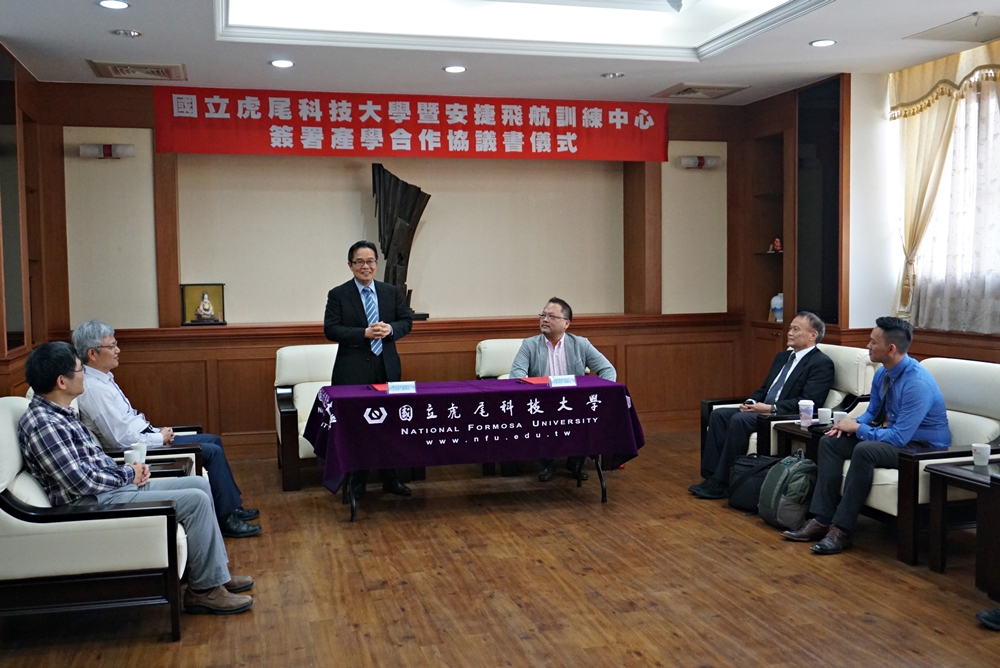覺文郁校長表示,本校現有的飛機工程系未來將與安捷飛航訓練中心就培育學生人才、師資方面進行密切交流,希望透過學界與業界的合作,促進學術交流並在未來導入飛行訓練課程,提升學生的職場就業力,讓學生畢業後可在航太相關產業發揮長才,也非常期待日後雙方具體合作的成果可以造福更多學生並提供學生多方面就業選擇。
