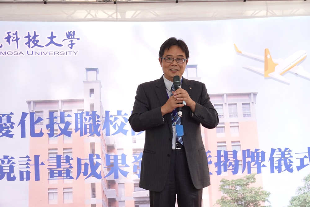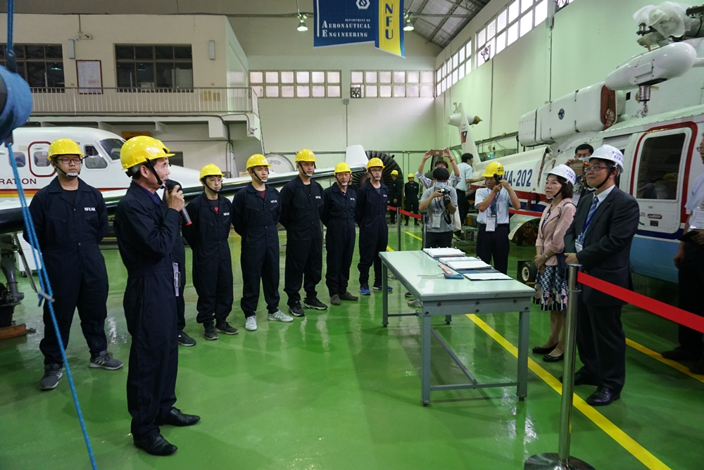 覺文郁校長表示,本校飛機系致力於航太科技的教育,從教學卓越計畫、技職再造、典範科大、航空技職教育計畫,逐年購置飛機與發動機,提升飛機系學生的基礎訓練與專業課程的教學,逐步邁向國際級航太維修產線。在106年經由教育部航空技職教育計畫的補助,建置航空維修訓練中心,成立民航局CAA B1.1專業證照訓練機構,今年已經有15位學生通過民航證照學科B1.1的考試,接受亞航與星宇航空之聘請。此次教育部透過優化技職實作環境計畫的補助,推動技專校院成立類產線環境基地,補助本校5100萬元,建置類似航空公司維修產線與工作情境,增購國際級飛機與可運轉的發動機,達成與航空界相同的學習環境。