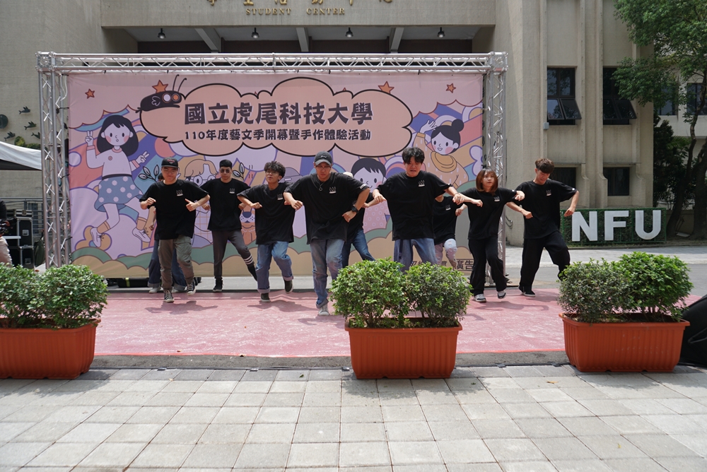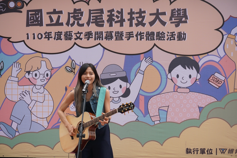 本校於4月26日上午11時假學生活動中心前藝文廣場舉行110年度藝文季開幕式暨手作體驗活動。活動一開始除由校熱舞社進行熱情活力開場外,更特別邀請到質感創作新女聲-吳汶芳蒞校快閃演出,邀請大家一起「#想啊想著你」勇敢大聲說愛。