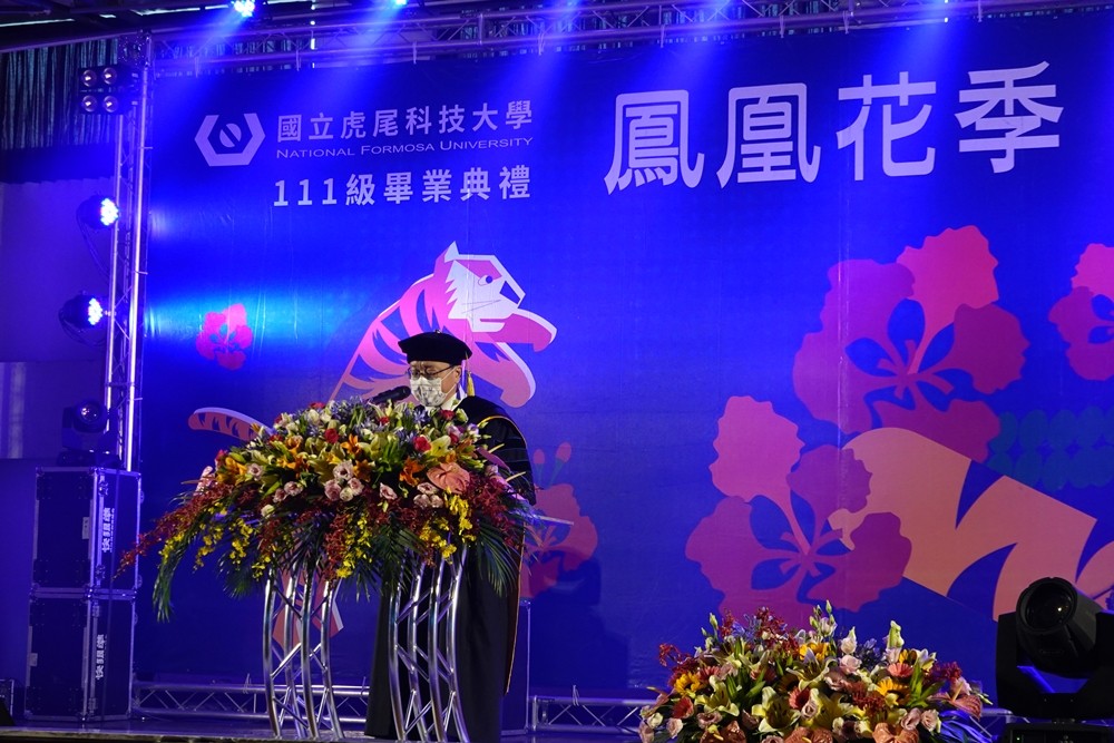 今年虎尾科大全校畢業生共計2988人,為恭喜學子順利完成學業,本次畢典以「鳳凰花季 虎能登峰」為主題,寓意虎科學子如時綻放,大步邁出校園,勇敢挑戰。