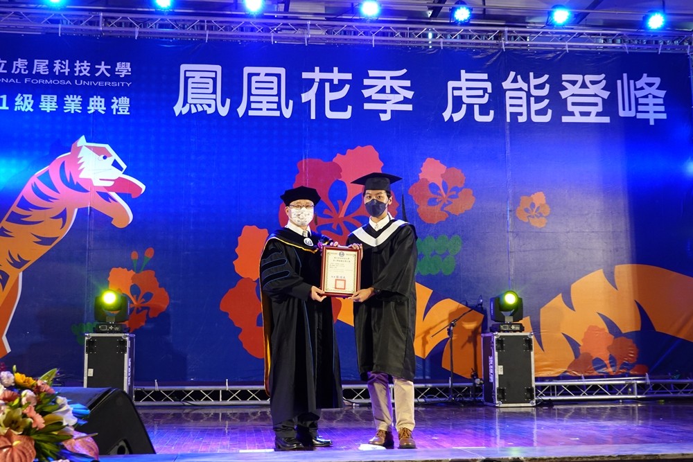 本屆畢聯會會長馬來西亞僑生吳振源,在飛機工程系就讀期間,積極參與外籍生權益推動,協助外籍生融入在地;今年更是主動擔任畢聯會會長,發揮豐富的活動經驗與協調專長,讓虎科大畢業典禮的各項活動都能順利進行,大大增進學子間的多元交流,堪稱外籍學子的典範。