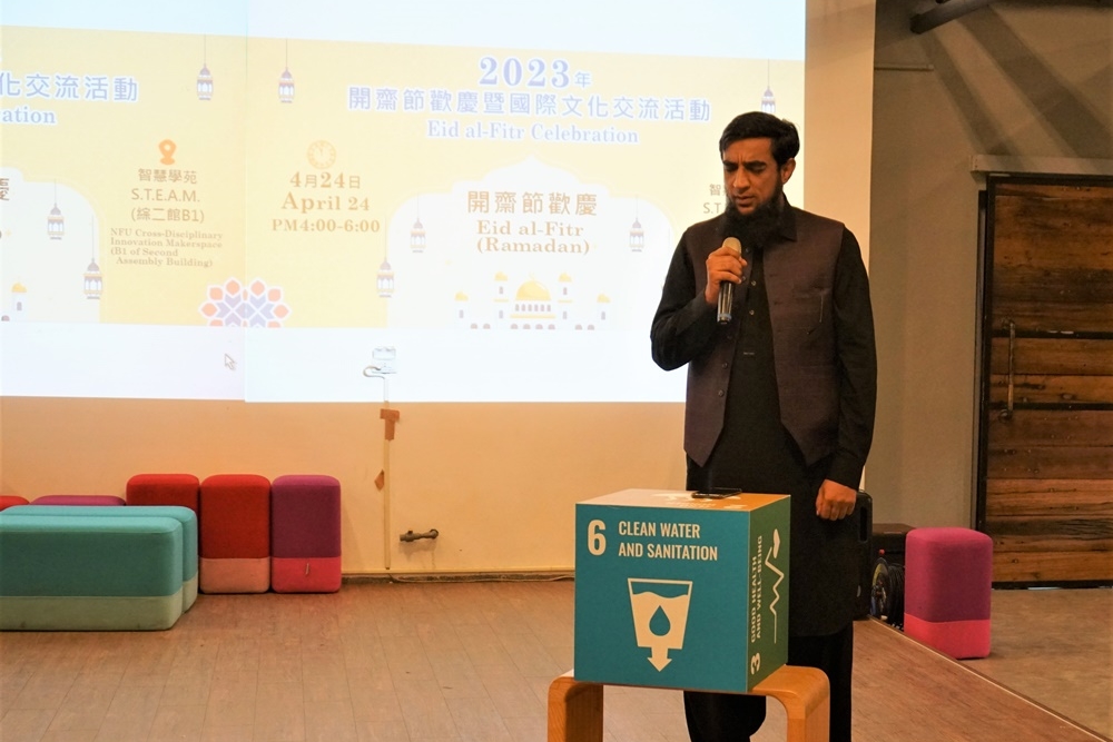 虎科大動機系博士生黎安迪已來台留學5年,他特別和大家分享伊斯蘭教生活台灣,包括奉行齋戒淨禮和清真飲食的挑戰,以及與在地人交流的有趣互動。虎科大並邀請友校巴基斯坦學生朗誦可蘭經,會後並邀現場民眾一同享用巴基斯坦及印尼傳統餐點,從視覺、聽覺及味覺多重感官享受,領略伊斯蘭教的豐富美好。