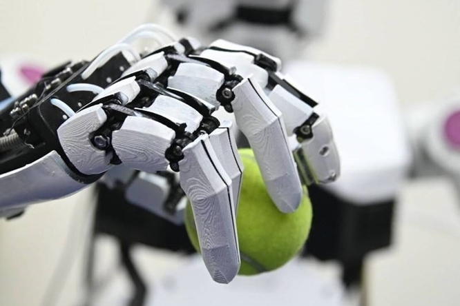 副校長張禎元說,清華紳士機械手臂是模仿人類的手指關節設計,使用氣壓傳動來控制手指彎曲動作,並採用獲得美國專利的演算法晶片來感測手指受到的回饋力道,進行精準的角度測量。