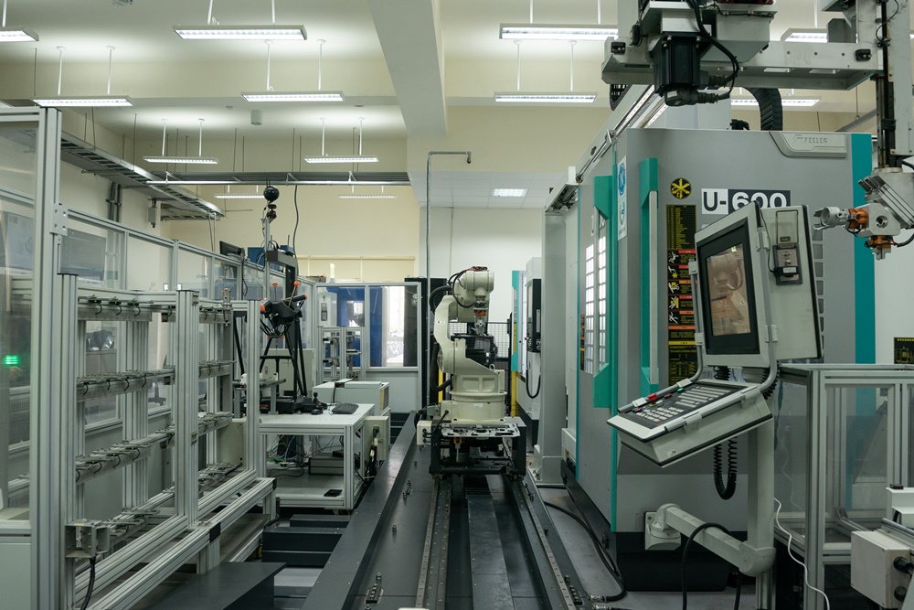 因應產業邁向跨領域及智慧化,虎科大高鐵校區「智慧機械及切削加工實驗廠棚」將於今年揭牌啟用,模擬業界生產線設備,打破傳統單一、僵化的教學模式,引導學生進行整合及體驗式學習。另規畫建置電機整合實驗室,結合工程與電資科系專業,發展自駕光達、高階機械手臂連結無人車代替人工作業、系統聯網等技術,培育智慧跨域創新人才。虎科大並積極推動產學合作,引領學生至產業實習現場,由企業資深員工培育,縮短與業界技術差距,今年更攜手台積電,由台積電訓練中心業師實地教學,共同擴大半導體產業人才庫。