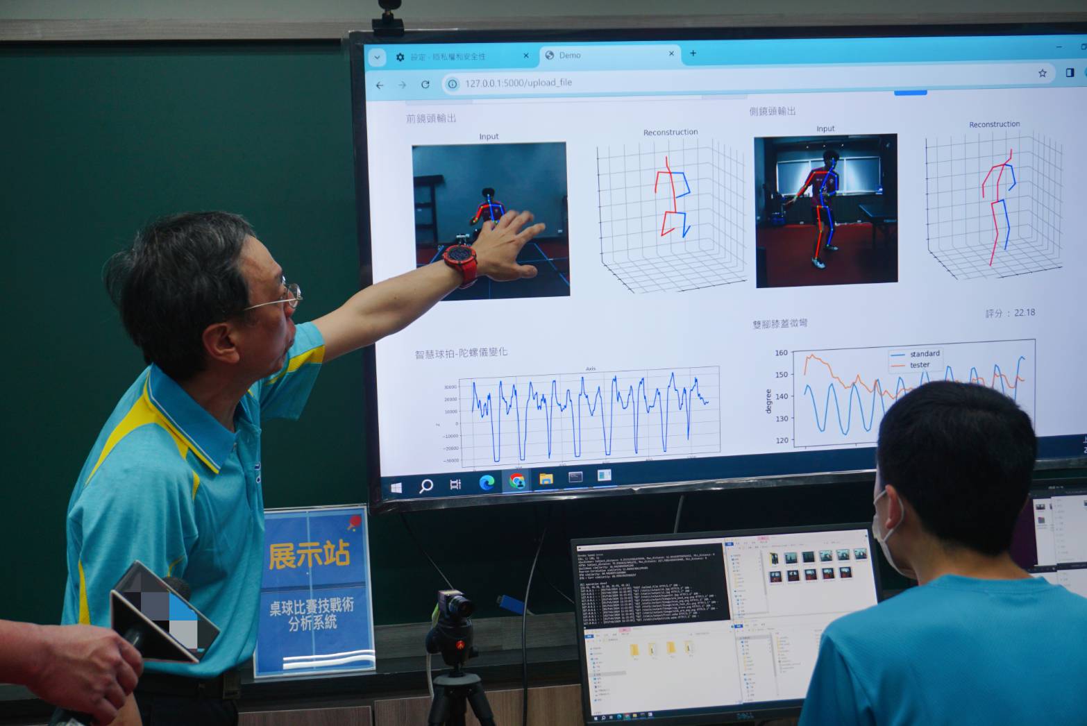 其中虎科大5項研發成果,包含「可高速判斷桌球落點之互動影像」、「智慧桌球拍感測器AR互動系統」、「智慧桌球拍之揮拍效能評估」、「AI揮拍姿勢判斷之互動桌球VR系統」與「桌球選手毫米波敏捷度分析」,以AIoT與XR元宇宙為技術主軸,實現智慧感測與虛實整合的AR/VR互動技術的桌球精準運科應用。