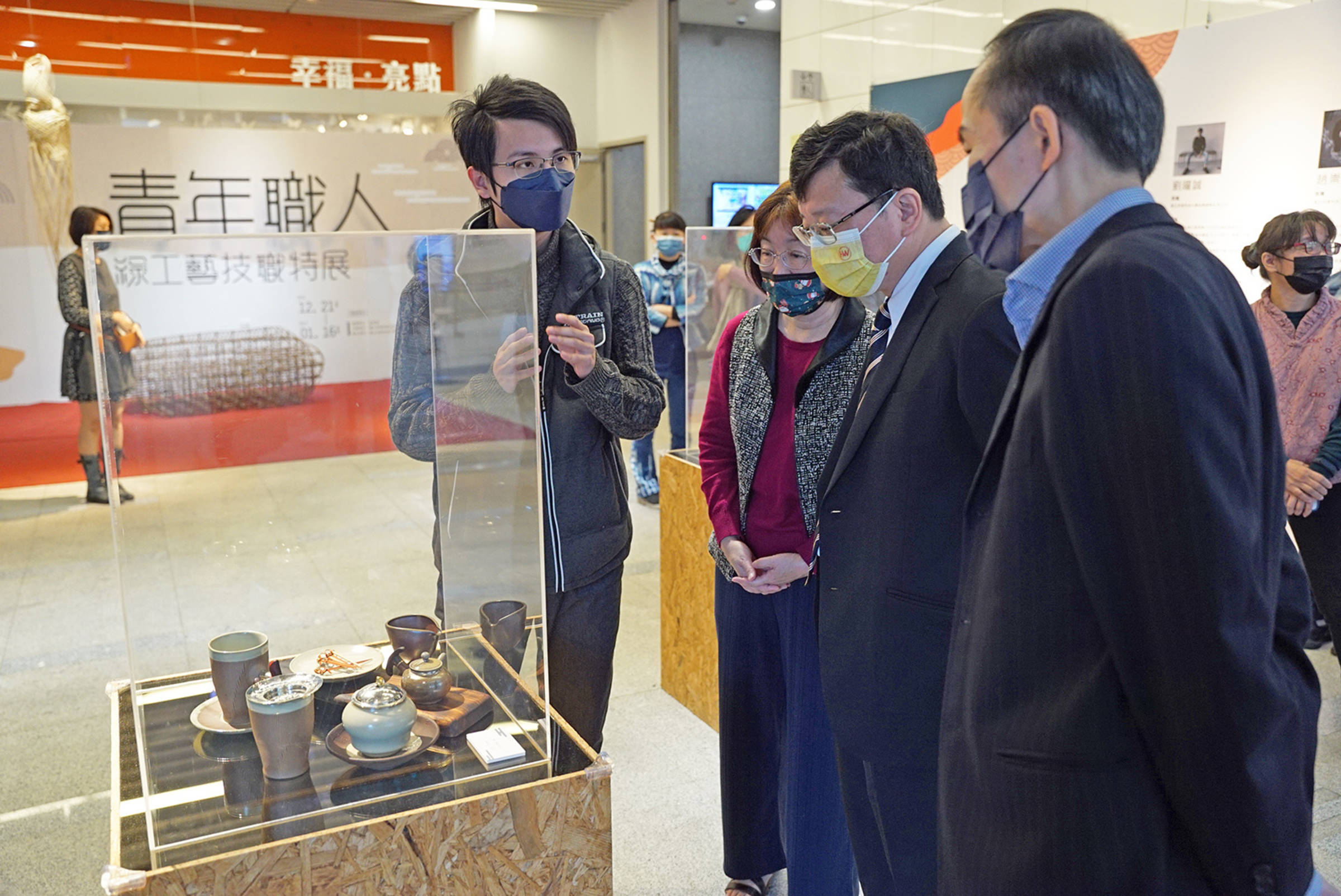「青年職人 · 綠工藝」技職特展將傳統工藝結合生物科技為發想,以生物廢棄物可分解材料取代塑膠,用後分解化作泥土養分。學生職人使用天然素材研發,例如,柚子皮、漂流木、貝殼、生漆、竹子、陶土等,創作出可食蠟筆、蚵粉陶瓷、茶具、漆器等,以嶄新且多元的創作形式結合常見的生物廢棄物來創作多元藝術的作品,而創作靈感源自師生長年來對在地文化及土地的關懷,透過線條的姿態與勾勒讓工藝作品訴說故事,超越日常生活的邊界,落實永續環境的生活風格。作品中不僅蘊含學生職人對在地人文與土地的深切情感,同時也展現古今並存的當代美學,將美學概念推展延伸至日常空間中。