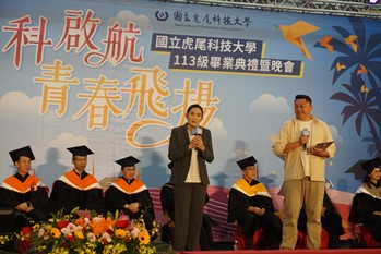 虎科大今年畢業典禮以「虎科啟航 青春飛揚」為主題,透過多國多語的畢業生致詞,展現校園文化兼容並蓄的自由風氣,也祝福莘莘學子在不同人生階段的啟航,都能勇於探索,成就自我。