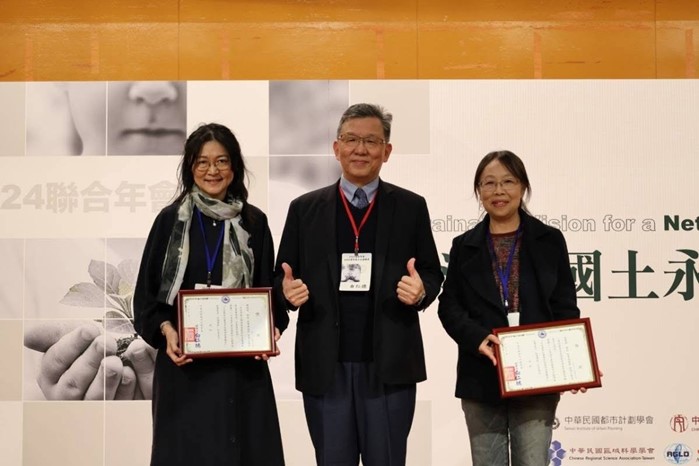 該獎項並於12/14(六)在中國文化大學舉行的「2024年聯合年會」上頒發,陳滋妤論文議題同時也呼應國家政策與年會主題「2050淨零國土永續願景」,扣合「淨零綠生活」,以研究推進友善綠生活環境。年會集結都市計劃、區域科學、住宅學會、地區發展學會及城市管理學會等六大空間規劃治理相關學術團體與科系師生,齊聚交流。