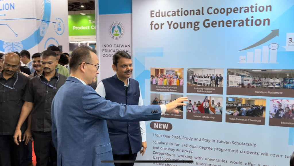 經濟部國貿署、外貿協會5日至7日在印度商業大城孟買(Mumbai)舉辦台灣形象展,當地副省長法德納威斯參觀教育合作館,期待儘快與台灣學府合作,相信有助於印度學生到台灣企業就業。