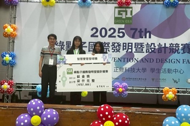 第七屆「綠點子國際發明暨設計競賽」歷時兩天,於8/2(六)圓滿落幕。國立虎尾科技大學資訊工程科師生團隊在特聘教授許永和指導下表現亮眼,以作品「智慧雙管發球機」奪下「發明類青少組」鈦金獎;另一項作品「智慧綠能動物辨識平台」則獲「發明類社會組」銀牌獎與「評審團特別獎」,共抱回三項大獎。