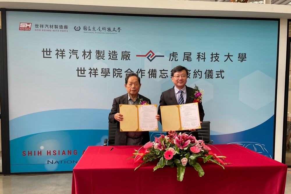 國立虎尾科技大學與世祥汽材製造廠股份有限公司(以下簡稱世祥)5/2(二)由虎科大校長張信良與世祥董事長周仕統共同簽署合作意向書,面對全球汽車零件供應鏈大換血,藉由產學攜手培育專業人才及技術研發,以加速國內電動車發展及汽車零組件創新研發。