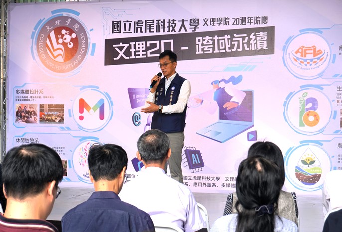 虎科大副校長方昭訓表示,虎科大以理工創校,改隸為科技大學後加入藝術元素,隨著科技推動世界快速的進步,改變生活的面貌,但人們對於美的追求未曾終止,這也是藝術存在的價值,文理學院在虎科大便是扮演這樣的角色,讓科技蘊含有價值的靈魂。文院創立至今,注重社區營造與多媒體發展,農業科技也促進雲林農業的發展,在在顯示學校整體能量。此次20週年院慶由彭及忠院長自今年8月上任起便積極規劃,相信在此一里程後,文理學院在理工的基礎上,將持續凸顯它的價值與特色。