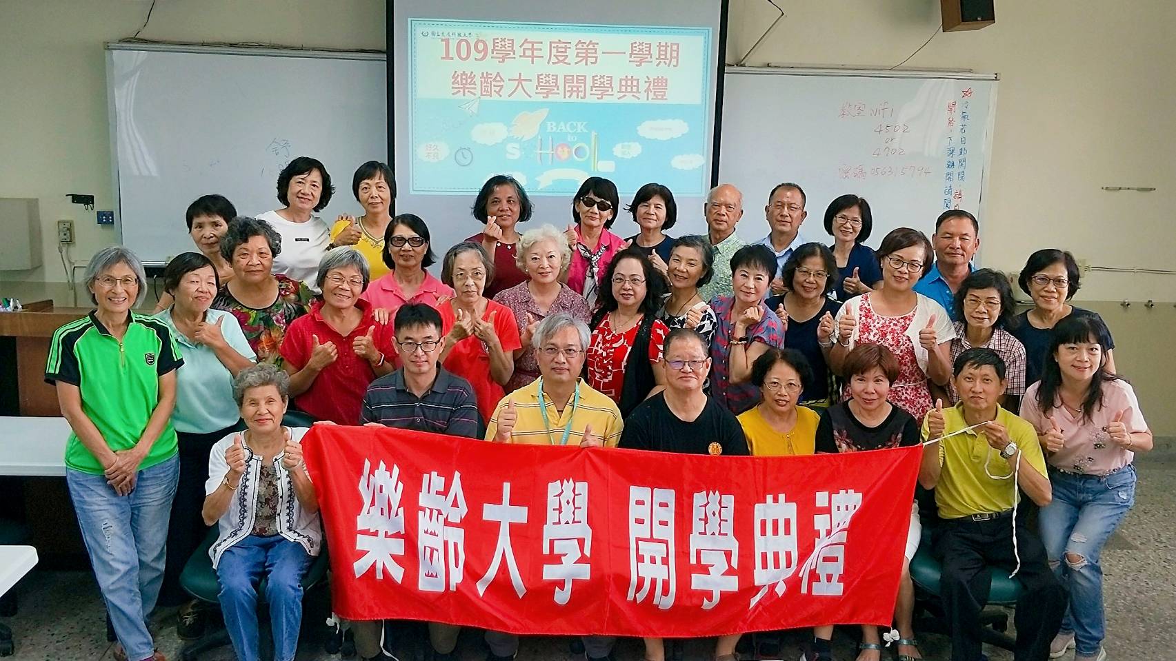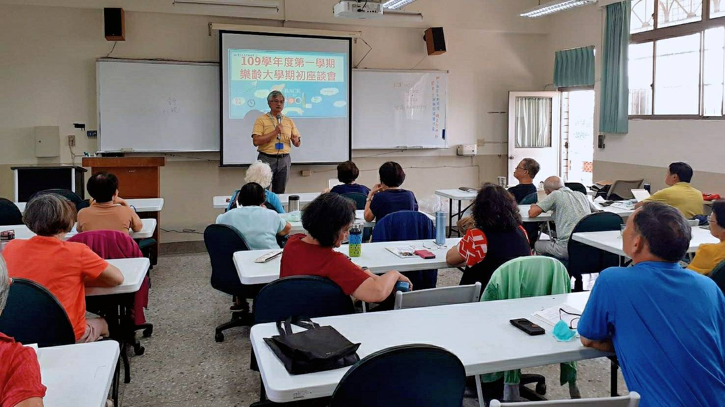 本校樂齡大學於109年9月23日熱鬧登場舉辦開學典禮,由進修推廣部蔡振凱主任主持,推廣教育中心陳志維主任、樂齡大學林基隆班長及周玫英副班長帶領全體學員一起參與,讓在地長者與大學生一同在大學殿堂中快樂成長.凍齡學習。