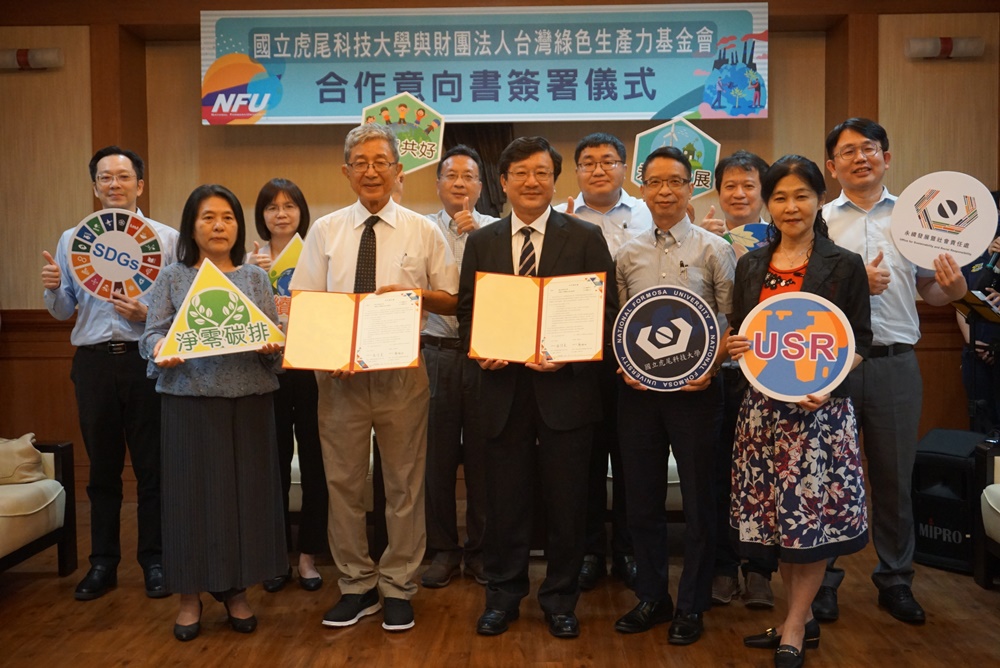 國立虎尾科技大學6/13(二)結盟財團法人台灣綠色生產力基金會(以下簡稱綠基會)與台灣國際創價學會,善盡大學社會責任,產學攜手持續關注地球永續議題。虎科大校長張信良與綠基金董事長鄭福田代表簽署合作意向書,共同培育國際綠色驗證人才。虎科大同時與創價學會舉辦「SDGs × 希望與行動的種子展」呼籲公民大眾以行動參與永續議題。