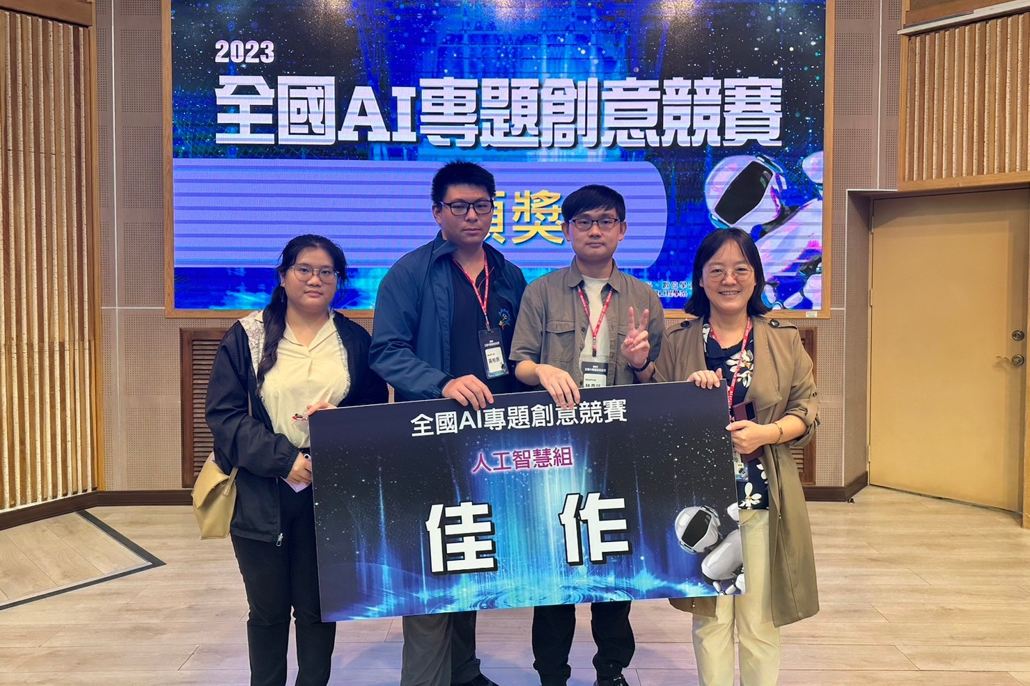 國立虎尾科技大學「跨域精準健康團隊」12/16(六)於「2023全國AI專題創意競賽」決賽,由生物科技系教授葉怡玲、資訊工程系副教授簡銘伸率隊參賽,以跨域作品「基於人工智慧與雲端自動辨別人類血癌K-562細胞毒殺影像系統」於全國27所大學的95支隊伍中脫穎而出,榮獲人工智慧組佳作。