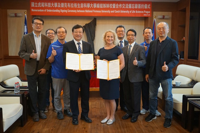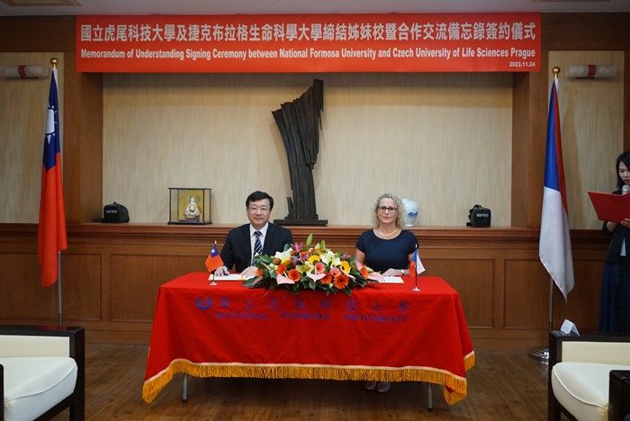 國立虎尾科技大學與捷克布拉格生命科學大學(Czech University of Life Sciences Prague)於11/24(五)締結姊妹校,布拉格生命科學大學榮譽校長Dr. Iva Hrabánková 代表簽署合作交流備忘錄,兩校於生物工程、智慧製造管理以及農業科技領域卓然有成,兩校未來也將加速多項國際專才培育計畫。