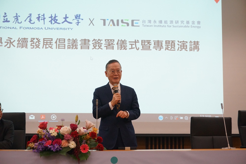 國立虎尾科技大學1/3(二)攜手台灣永續能源基金會(TAISE)簽署「大學永續發展倡議書」,由虎科大校長張信良與基金會董事長簡又新代表簽署,共同宣示高等教育落實永續發展,以及發揮社會影響力的決心。
