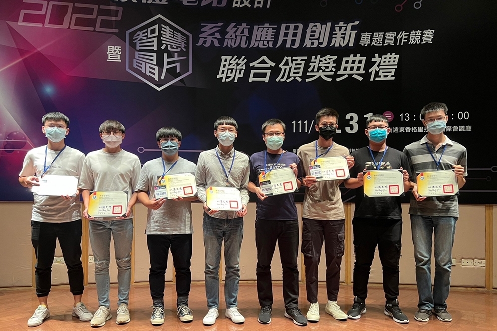 教育部「2022全國大學校院積體電路設計競賽」為臺灣規模最大IC設計專業技術競賽,舉辦迄今已邁入第25年,每年皆吸引超過一千位以上電機電子科系學生報名參加。電機系教授呂啟彰與副教授陳厚銘指導學生參賽「研究所全客戶設計組」,於激烈競爭中勇奪2項優等、2項佳作,與1項設計完成證明。
