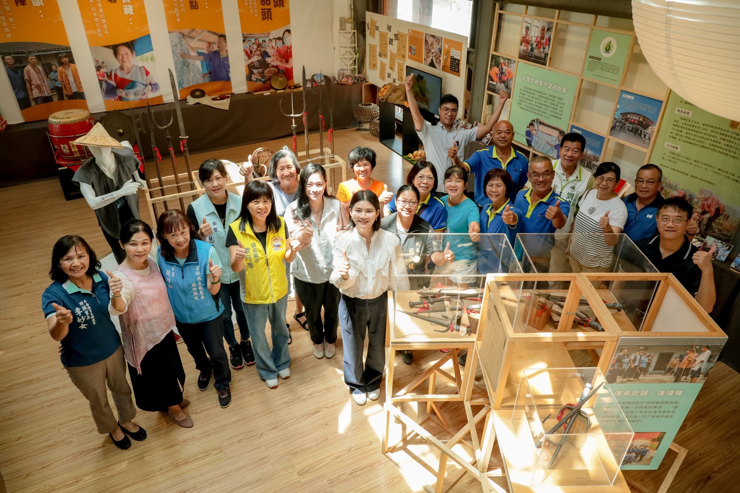 「田頭動能:社區亮點」以平面與動態影像紀錄社區居民於當地活動、信仰中心和志工任務中的互動與合作,呈現社區凝聚力的力量;「傳承武韻:連環陣」則展現田頭「勤習堂」武館的連環陣歷史脈絡,其為結合古代武術與藝術的民俗技藝陣頭,現場並展出多樣兵器,及以其為背景拍攝的「出陣」微電影,呈現出社區武韻的傳承精神。