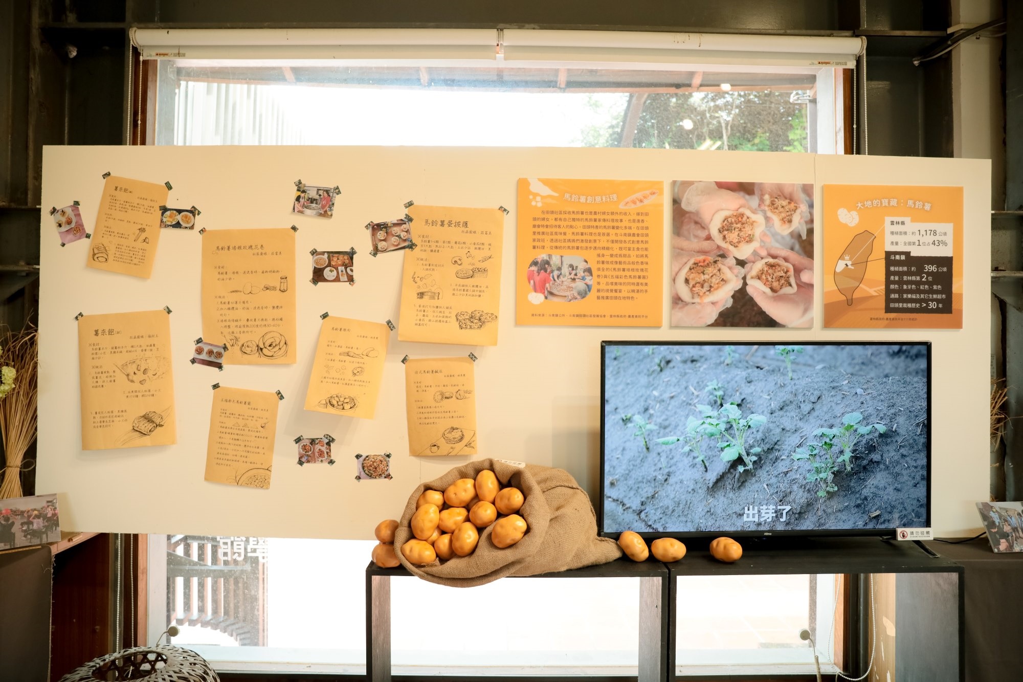 斗南是全台馬鈴薯栽培面積最大的鄉鎮,田頭栽種馬鈴薯超過三十年,展區「大地的寶藏:馬鈴薯」以動態影像帶領觀眾探索馬鈴薯的種植歷程,且馬鈴薯也是當地進香與廟會招待客人的料理,社區媽媽們不藏私地秀出「五色馬鈴薯圓」、「馬鈴薯培根玫瑰花卷」與「馬鈴薯蛋披薩」等私房料理食譜。「豐饒的農園:雲林幸福農場」介紹田頭「雲林幸福農場」主人曾志承如何在社區土地上培育出令人垂涎的「綠寶石雪蜜棗」和「紅珊瑚蓮霧」等優良作物,展現其堅持自然農法的熱情。