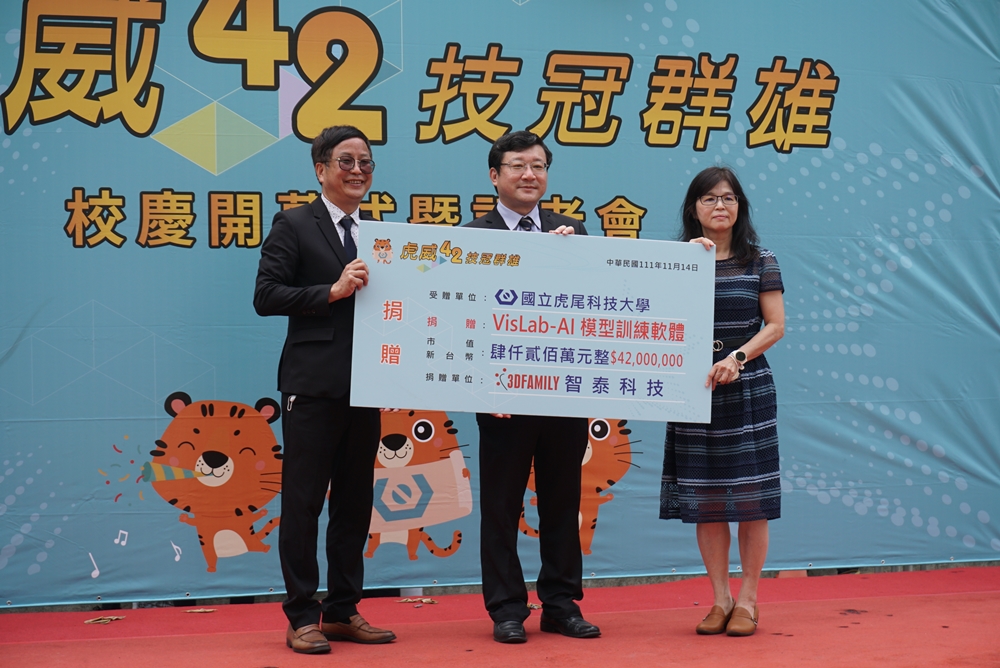 虎科大自校長張信良上任以來,致力推動智慧校園,鼓勵學生跨領域學習,持續強化與業界間的連結,攜手企業共同為永續人才努力。智泰科技股份有限公司董事長許志青捐贈「VisLab AI模型訓練軟體」105套作為虎科大42歲生日禮物,協助虎科大推動AI教育與人才培訓。