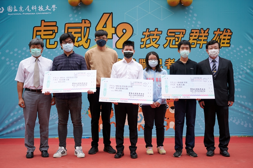 現場並頒發「財團法人虎尾科技大學文教基金會優秀學生獎學金」,由虎科大首任校長同時也是基金會董事長張天津頒獎,張校長卸任後仍持續關心虎科大的全人教育,本次獎勵優秀學子20名,「豐泰王劉美惠女士優秀入學學生獎助學金」鼓勵國內外優秀學生就讀虎科大,為雲林育才留才,共頒發14位學生,其中2位獲得最高獎金25萬元,「常陽拔尖獎學金」由常陽興業股份有限公司挹注虎科大500萬元,常陽董事長林煜喆當日親臨現場為學生頒發獎盃,勉勵學子自我鍛鍊,提升就業競爭力。