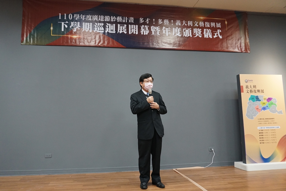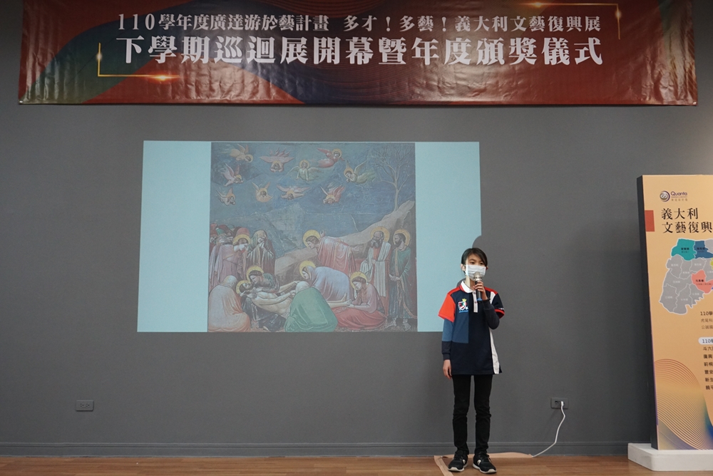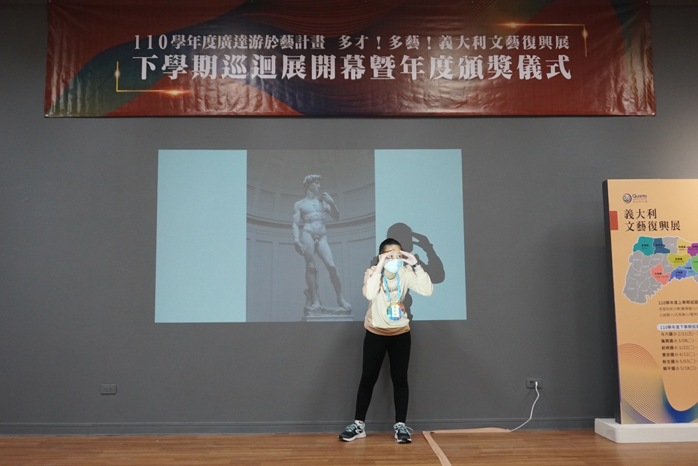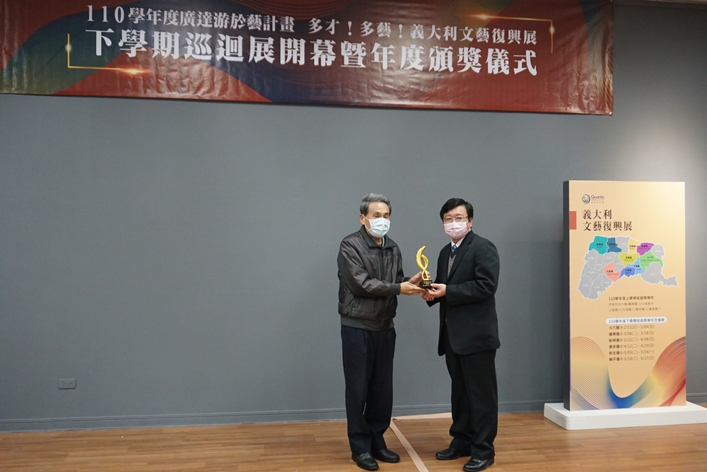 本校與廣達文教基金會游於藝合作計畫迄今14年,每年皆擔任盟主學校,和雲林縣學校共同辦理超過百場巡迴展。110學年度以「多才!多藝!義大利文藝復興展」於2/22(二)舉行開幕暨年度頒獎儀式,為今年的巡迴展揭開序幕。