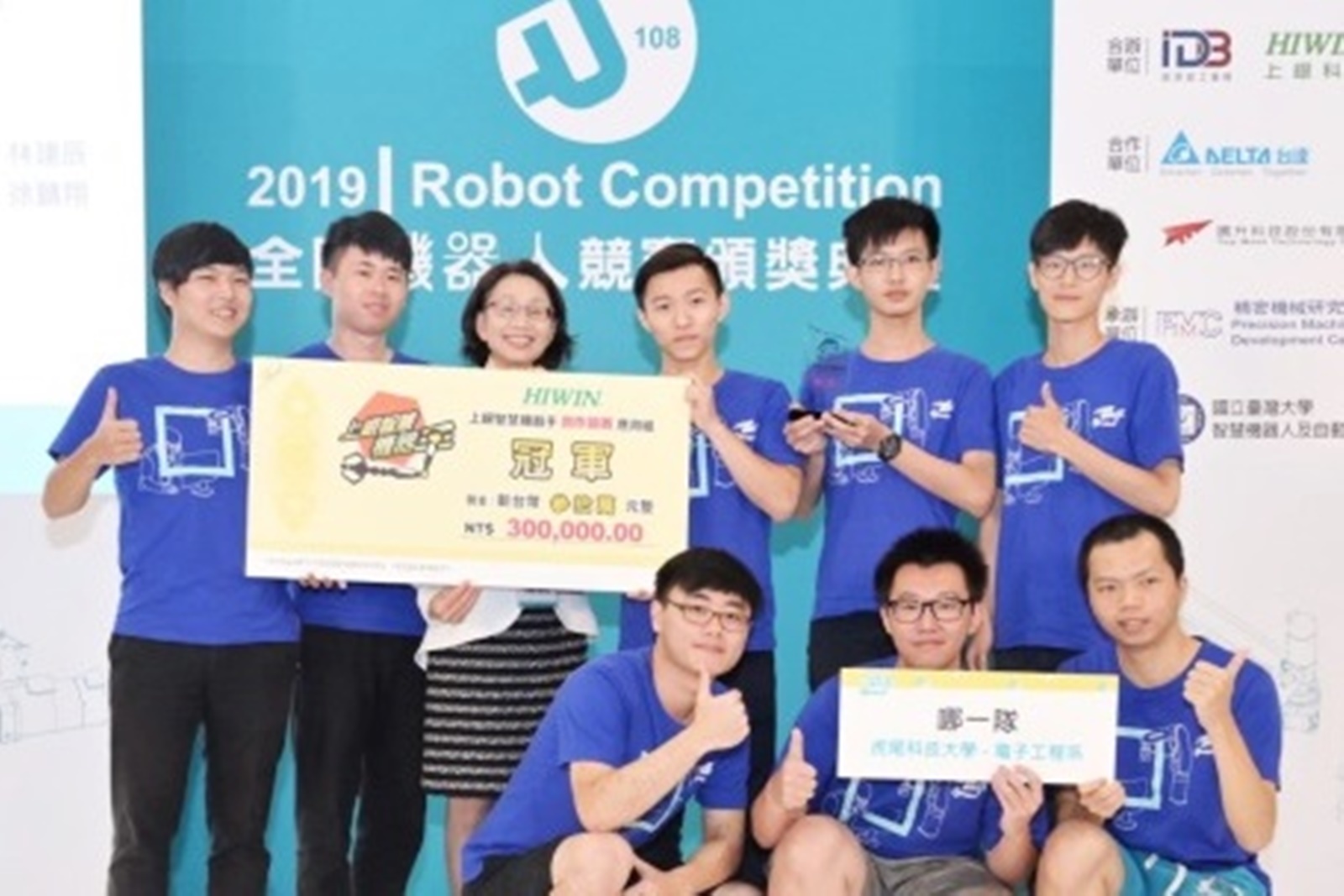 在國內指標競賽「旺宏金矽獎」曾打敗台成交等名校獲頒鑽石大賞且屢獲佳績的電子工程系王榮爵教授,過去十一屆上銀智慧機器手實作競賽也獲得總成績3個冠軍、2個亞軍、4個季軍、6個佳作、1個新銳獎及4個單項冠軍。本次帶領團隊成員由梁富鈞、張安君、林建辰、徐鵬翔、蘇俊誠、陳宣諭、林祐生、黃咨富等八位同學所組成的「哪一隊」,以優異成績在決賽當中脫穎而出,榮獲應用組冠軍,贏得 30 萬元獎金。