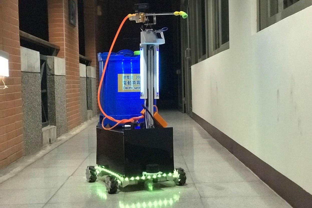 由資工系陳國益副教授與蘇鈺崴、謝寶萱、張明、王宣融同學所組成的團隊,以人工智慧暨電腦視覺消毒服務型機器人獲得應用組優勝獎,本團隊研發多功能模組化且機動性強的智慧消毒機器人,消毒機器人有消毒、送餐、帶路、量體溫、辨識有無戴口罩功能,是結合機器人與人工智慧 AI領域的優秀實作成品,亦榮獲24,000元獎金。