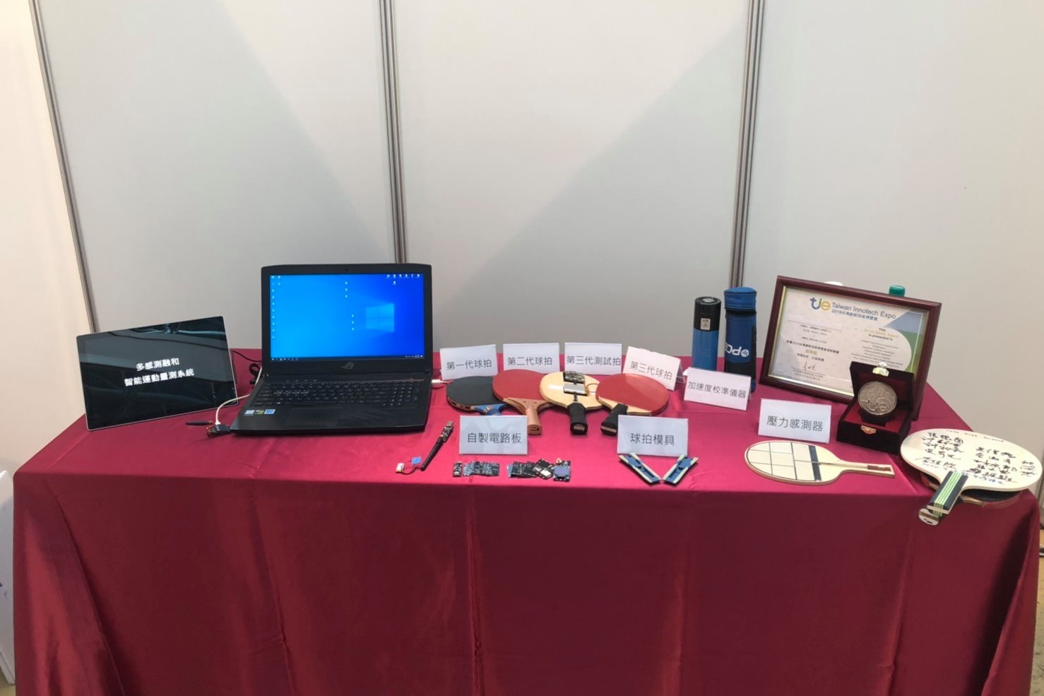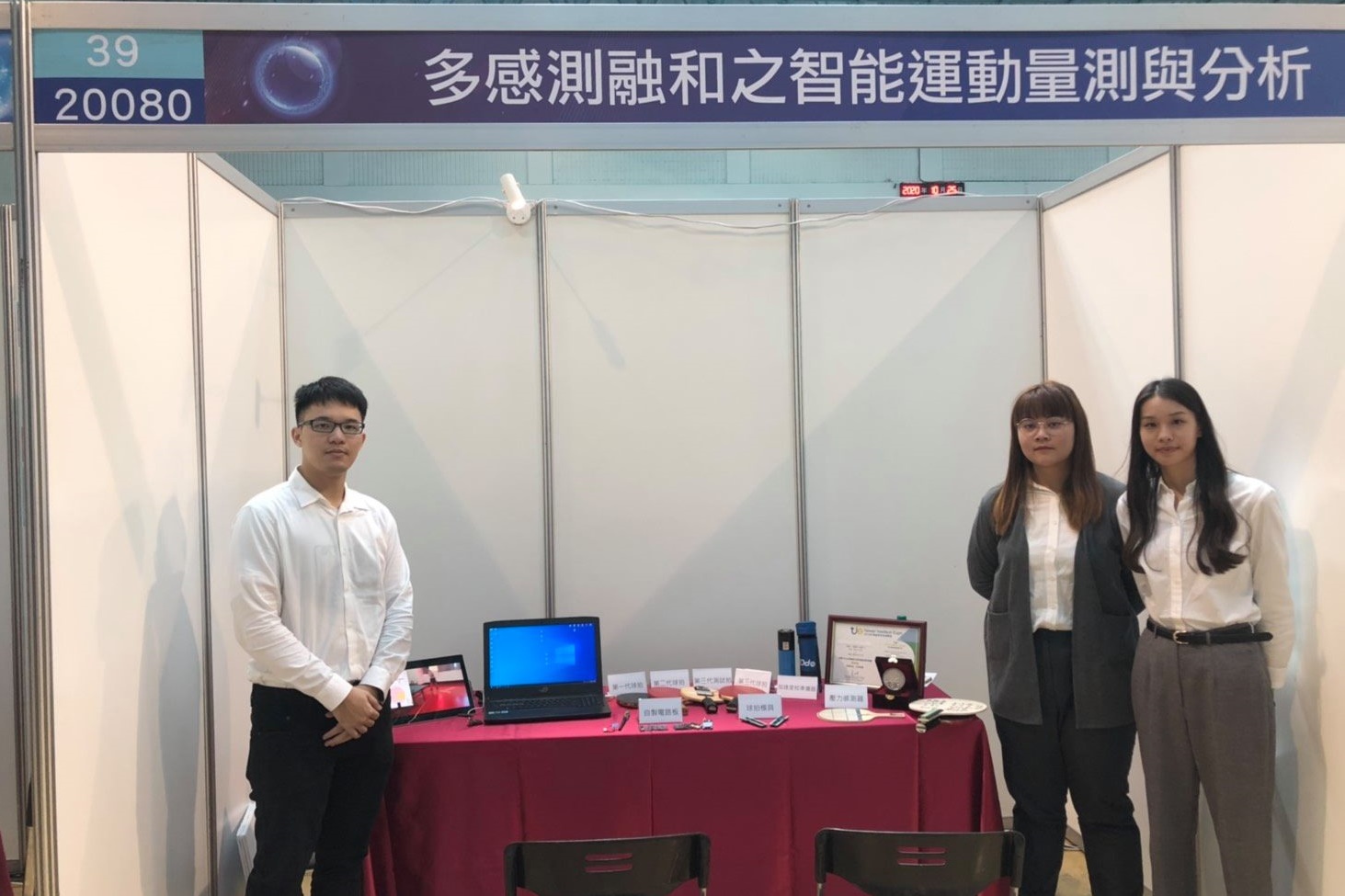 許永和教授與黃珮雯助理教授所指導的作品「多感測融和之智能運動量測系統」,參與團隊的學生為朱冠融、張瑜玹、朱育萱。該作品為了提升桌球選手在國際間的競爭力,將球拍結合九軸感測器與壓力感測器的資訊,收集選手揮拍時的各項數據。並結合了多項的演算法與決策樹分類,來達到選手們的訓練及分級選材,並且實現精準運動的目的。同時也在數位永續科技的組別榮獲第三名。