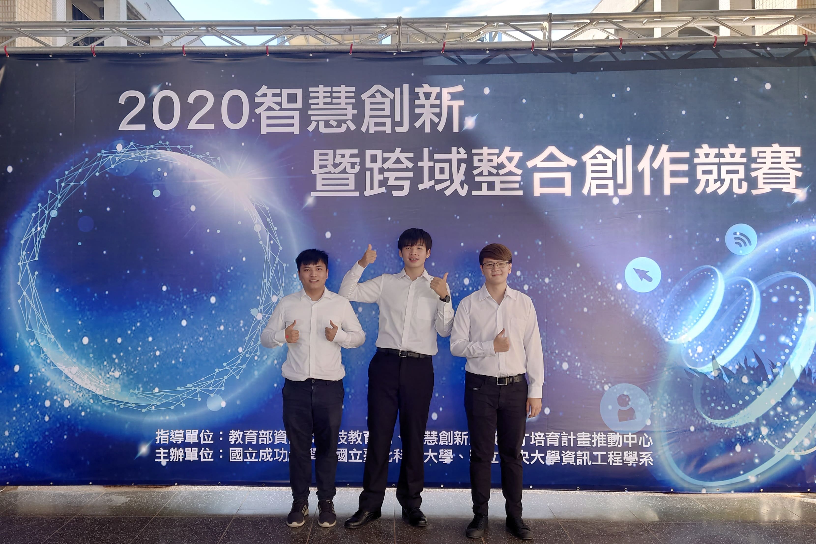 2020智慧創新暨跨域整合創作競賽,於2020年10月25日在國立中央大學舉辦比賽,本屆比賽參賽隊伍來自全國 48 所大專院校,共兩百餘隊。在眾多隊伍中,本校資訊工程系許永和教授、陳國益副教授與應外系黃珮雯助理教授,帶領學生尤琮閔、劉姝辰、張惠深、崔勤遠,以作品「虛幻戰線」脫穎而出,獲得企業特別獎第一名與體感互動科技組第三名。資訊工程系學生朱冠融、張瑜玹、朱育萱以作品「多感測融和之智能運動量測系統」獲得數位永續科技組第三名。資訊工程系學生陳廷偉、陳泓穎、張廷嘉、蔡昀庭,以作品「全自動行李搬運跟隨平台」獲得智慧機器組第三名。以及資工系學生賴學緯、莊崴任、吳子揚、郭奕賢,以作品「探空汙」獲得物聯網組佳作。共榮獲一金三銅一佳作再創佳績。