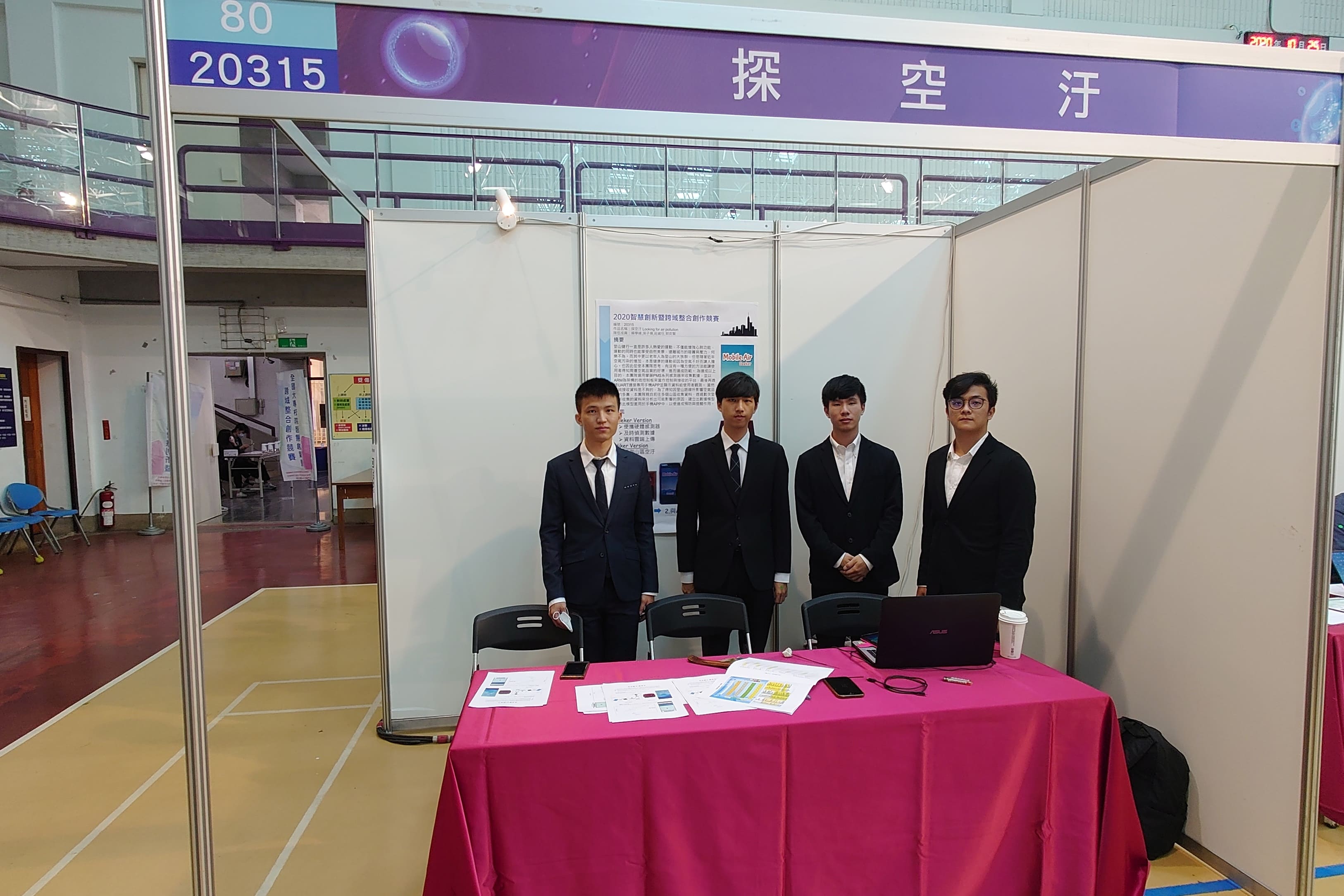 陳國益副教授所指導的作品「探空汙」獲得物聯網組佳作,參與團隊的學生為賴學緯、莊崴任、吳子揚、郭奕賢,其為一款協助登山群眾快速得知山區空氣品質的作品,透過自製硬體感測器收集大量山區空汙資料,並分析資料得出預測公式,最後運用簡易直觀的手機APP程式,讓使用者能在家中就先得知山區空氣狀況,最後獲得評審團隊的讚賞肯定。